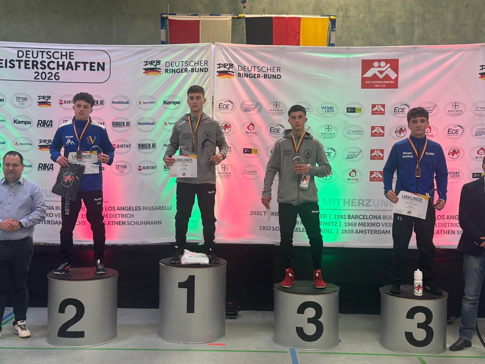 Die fünf Medaillengewinner im Greco-Bereich der U20-DM in Zella-Mehlis